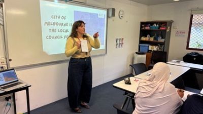 City of Melbourne Officer facilitating a session as part of an English language class in Carlton.