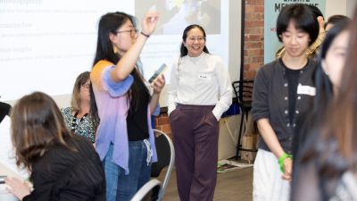 Expert facilitator Feifei guiding participants through an activity at a workshop for past and current Chinese International students